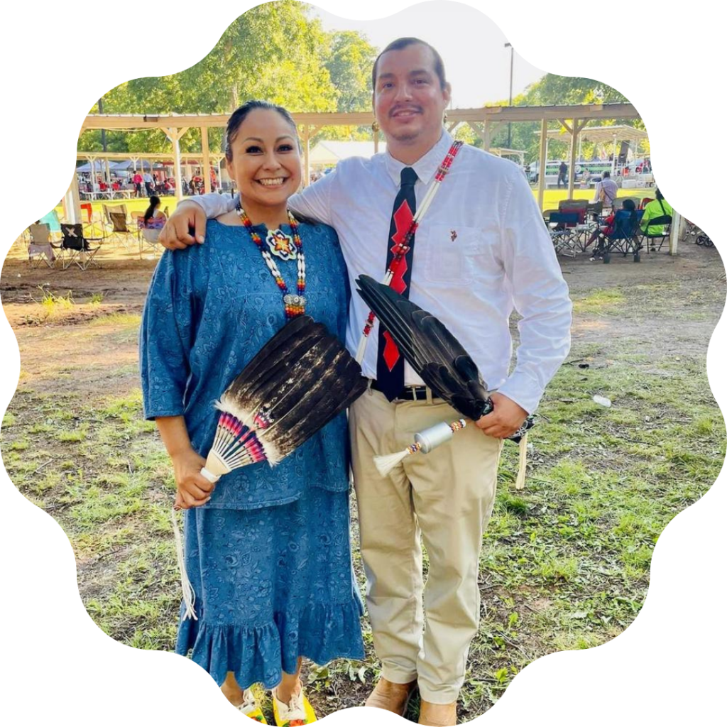 Elsie is a relative of founding mother descendants, daughter of Randall and Rose Whitehorn, and a former Honolulu Powwow Coordinator. She is a National Association of Tribal Historic Preservation Officer for the Southern Plains region with the Otoe-Missouria Tribe. She is a PhD candidate, newlywed, and an avid traveler.